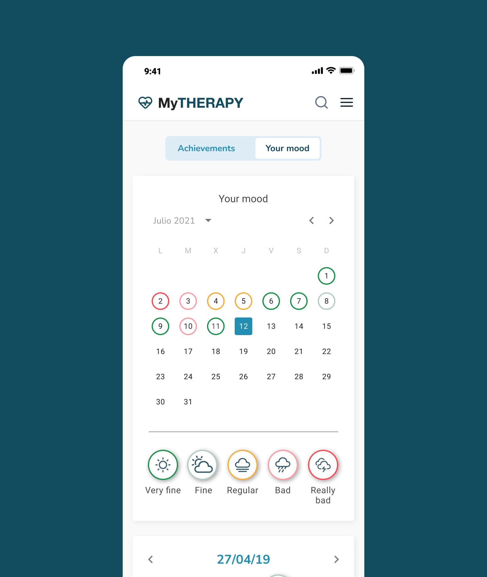 The app, meanwhile, evolved based on the needs expressed in the interviews. Many users said they needed to see concrete progress to feel motivated, which led to the development of a gamified achievement system, where each day without gambling became a tangible milestone. Another recurring finding was the importance of controlling and communicating emotions, not only for the user themselves but also as a support tool in sessions with psychologists or groups, which led to the daily recording of emotional state.