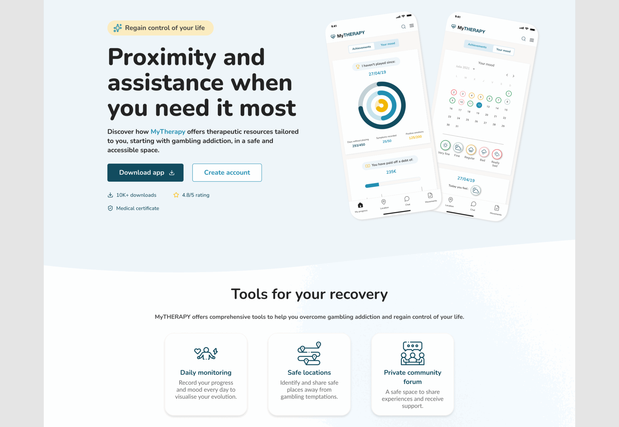 A digital experience designed to accompany individuals on their journey through addiction, with an MVP focused on gambling addiction.