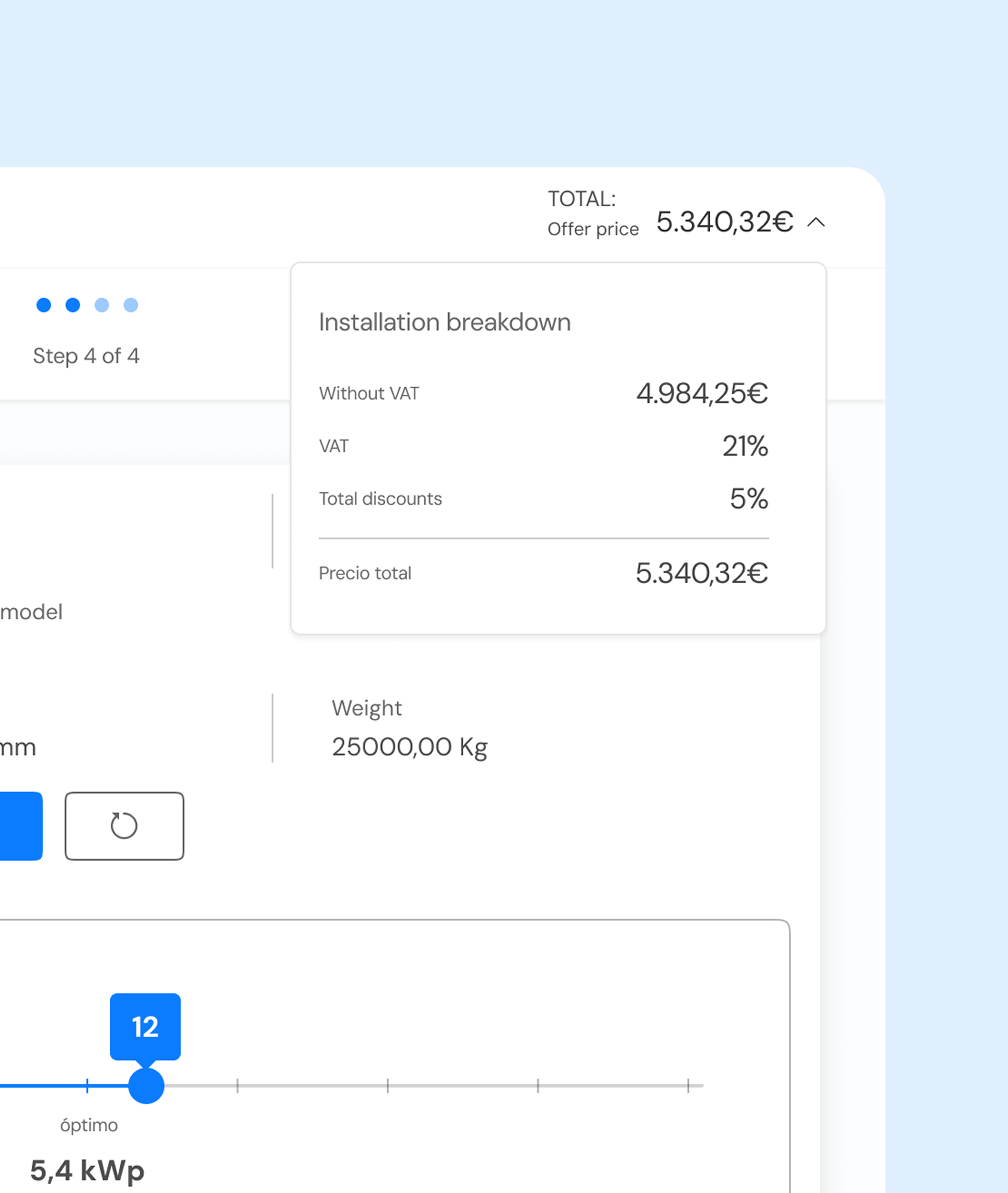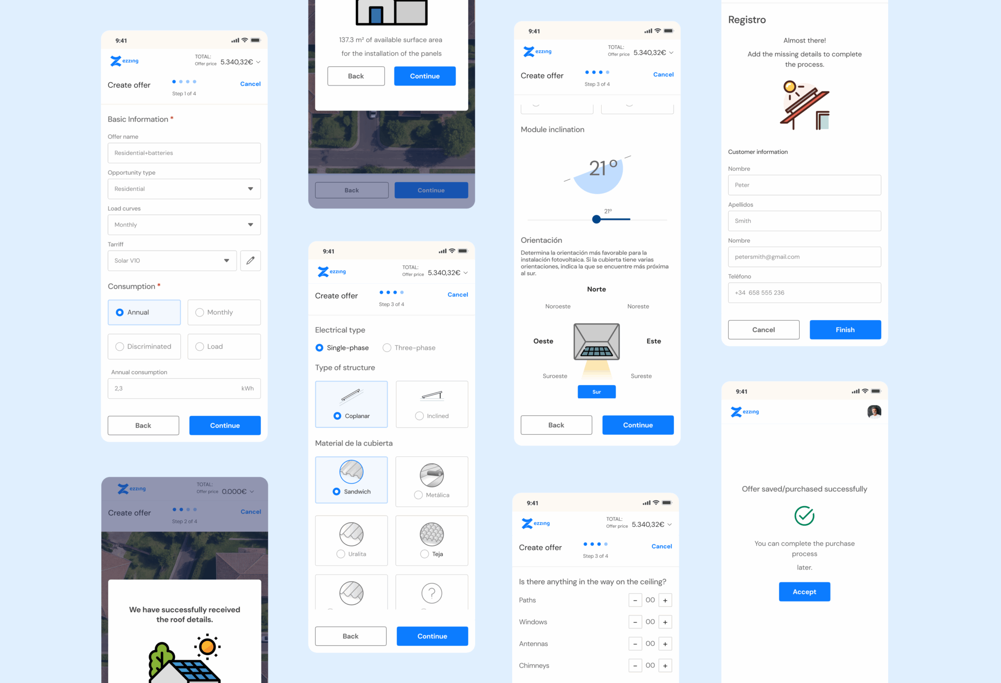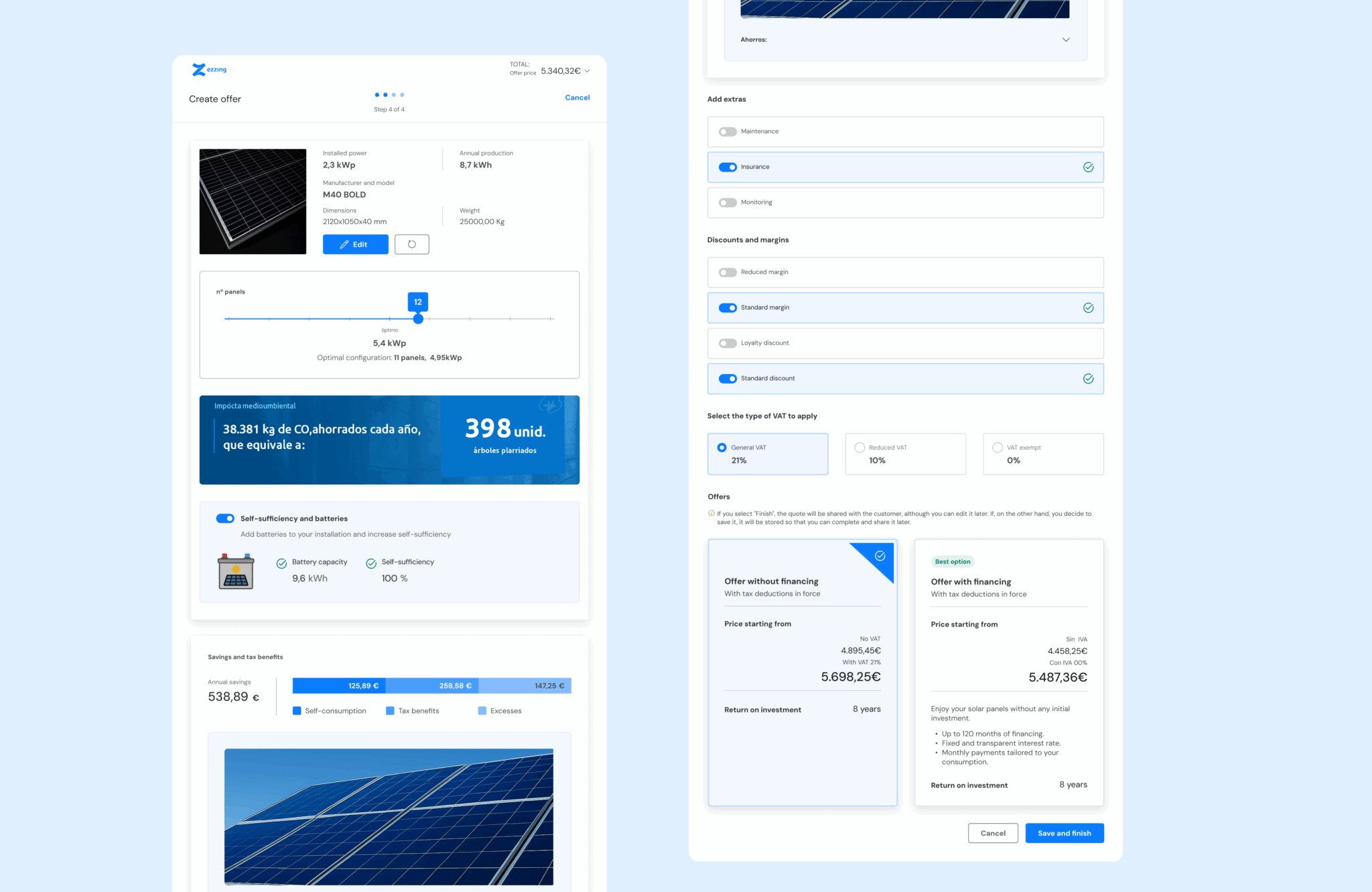 Solar installation companies needed a flexible tool that would allow their sales teams to make offers directly at the end customer's home or location, without having to return to the office to prepare the proposal.